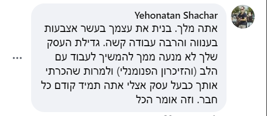 זמינות מיידית, מענה מקיף וכולל. חסכתם לי כל כך הרבה זמן ובדקתם עבורי אלטרנטיבות לייעול. פשוט כי אכפת לכם מכל לקוח ולקוח.
